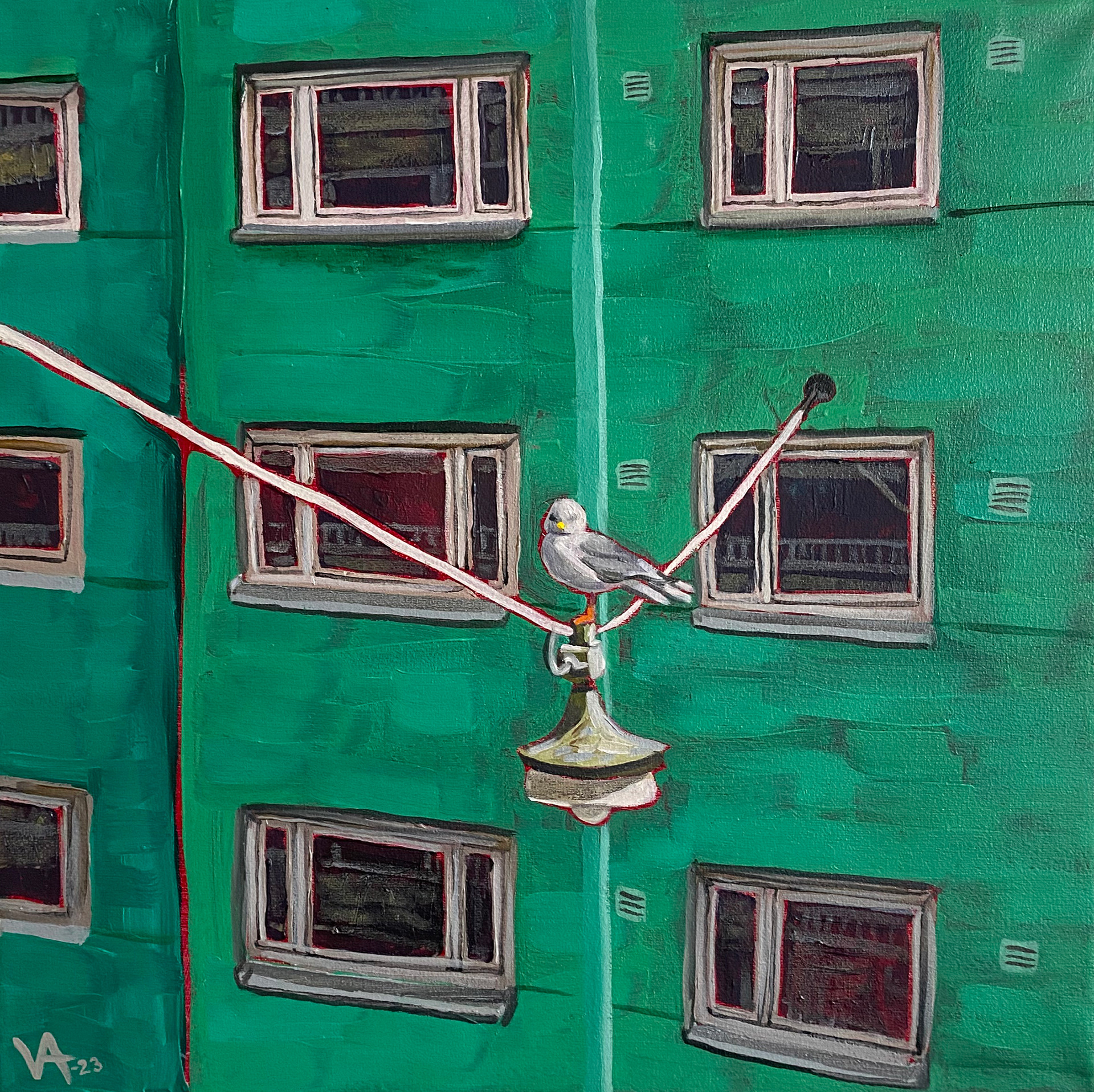 Lokki Ullanlinnassa, öljyväri kankaalle 2023